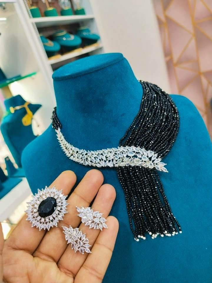 Add sparkle to your style with this elegant piece featuring American Diamond (AD) stones paired with shimmering crystal beads. Designed to catch the light and attention, it's perfect for festive occasions, parties, or everyday glam. Lightweight, eye-catching, and easy to match with both ethnic and western outfits.