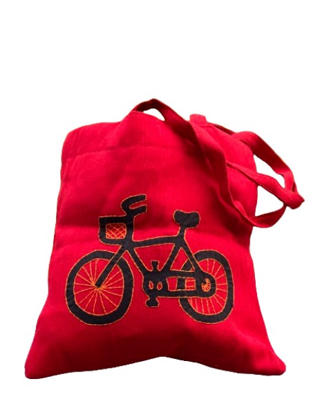 Hand stitch Cycle tote Bag made by good quality jute fabric with waterproof internal coating. This tote bag is eco friendly and washable.