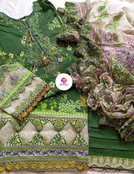 Digital Printed Lawn With Embroidery Neck Shirt With Digital Embroidery Bamber Chiffon CutWork Dupatta with pearl embellished on pallu.