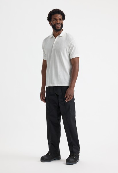 Made from 100% ring-spun combed cotton, this polo shirt offers exceptional softness and durability. It is reactive dyed to ensure long-lasting color vibrancy. Designed for both style and comfort, it features a knitted raised collar and cuffs, along with a taped neck for added strength. The three self-colored button placket adds a refined touch, while the taped side vents with an extended back provide a better fit and ease of movement. A half-moon yoke enhances the overall structure, making this polo a perfect blend of elegance and practicality.
