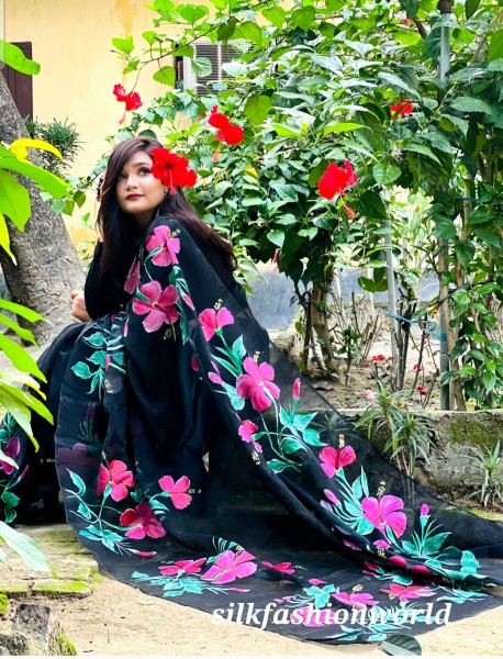 Rajshahi Muslin Silk Hand Paint Saree