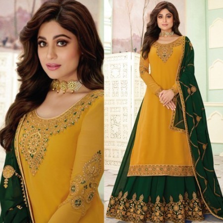 Shamita Shetty Georgette Embroidered Lehenga Pattern Gharara Suit – Glamour Redefined ✨