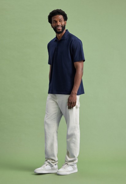 Crafted from a sustainable blend of 50% recycled polyester, 30% recycled cotton, and 20% organic cotton, this garment ensures both comfort and eco-friendliness. It is reactive dyed for long-lasting color and features a knitted collar with a taped neck for added durability. The hemmed sleeves and bottom provide a clean, polished look, while the three self-colored button placket adds a touch of style. Designed for convenience, it is washable at 60°C, making it both practical and stylish.