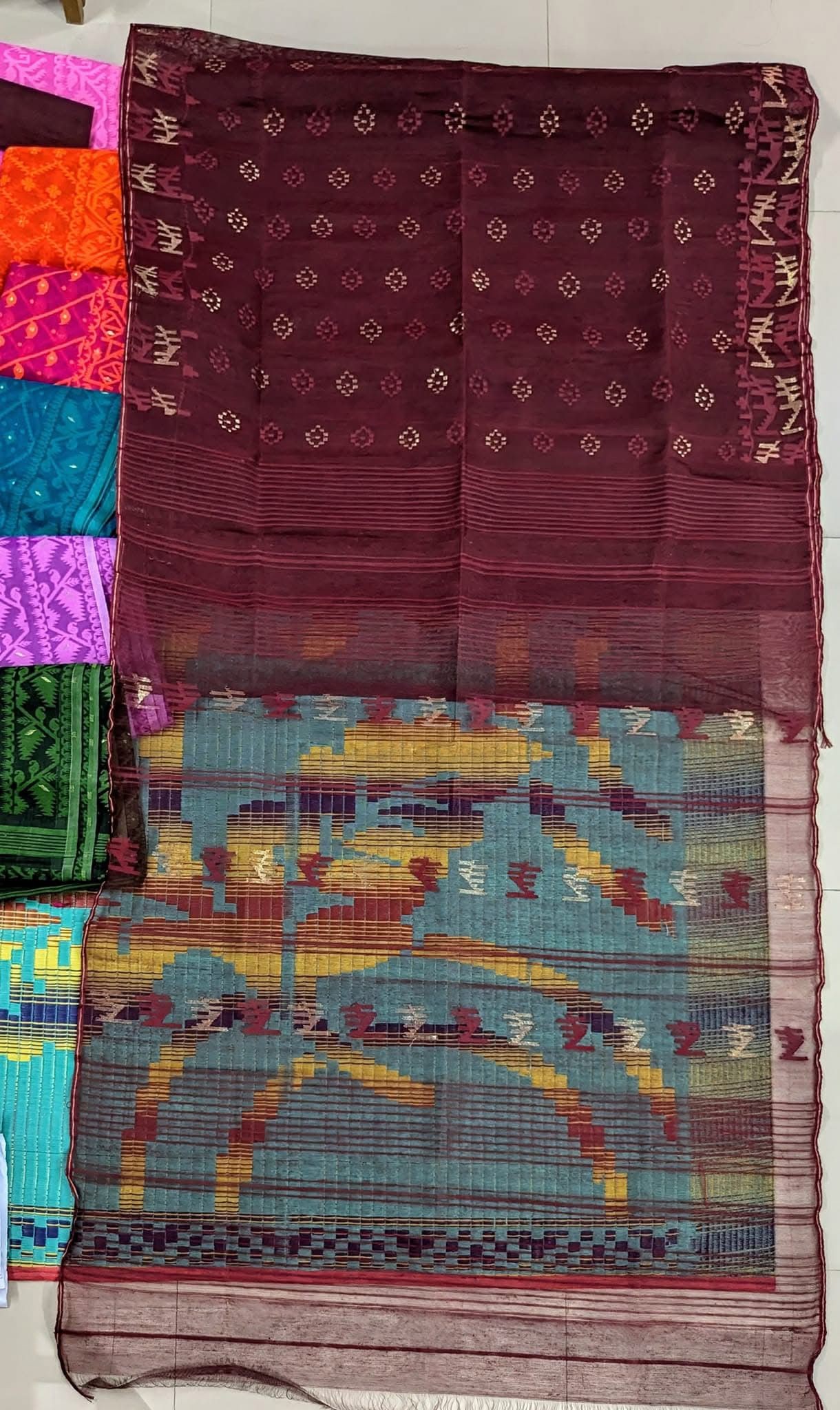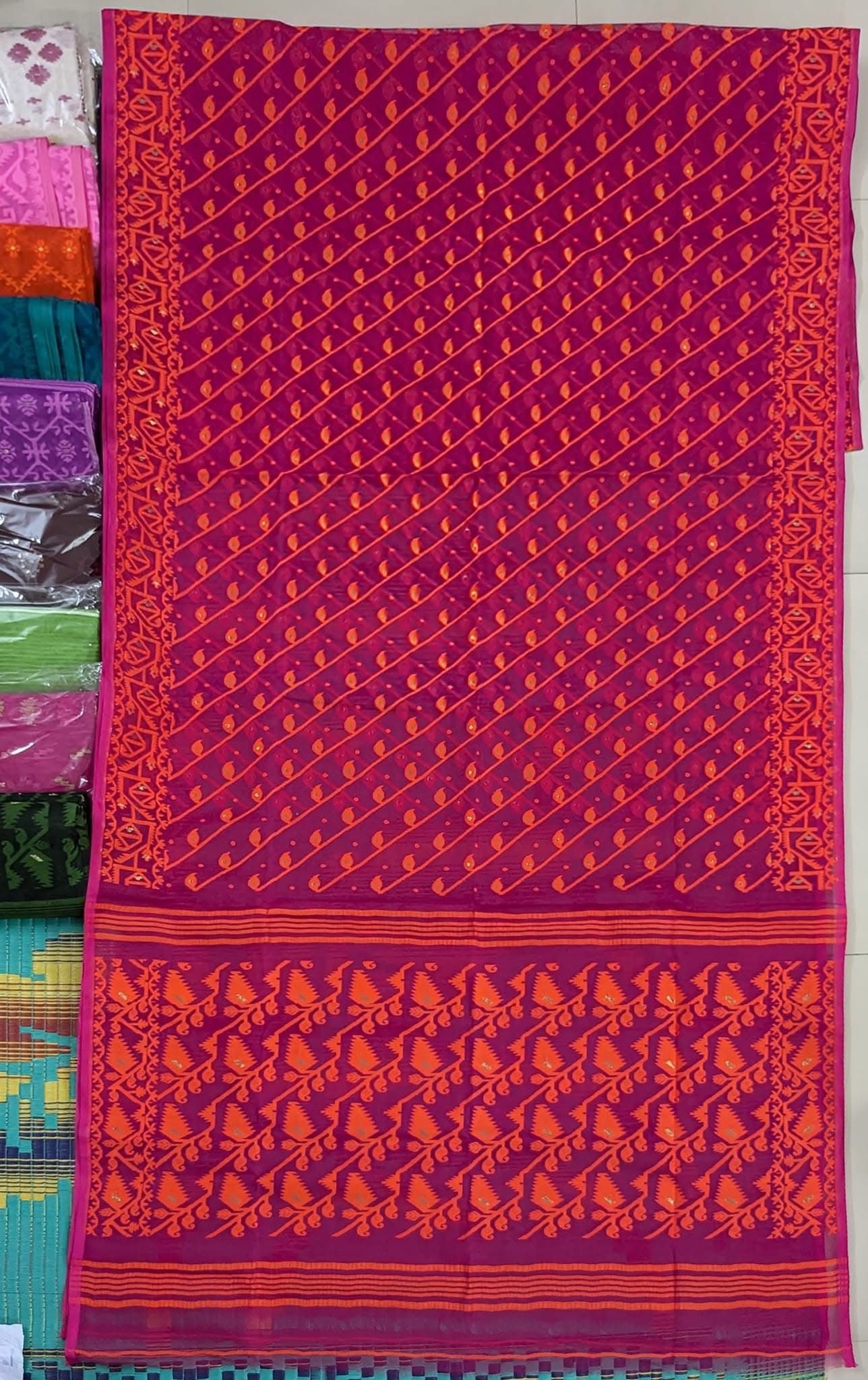 Gracefully handwoven with intricate motifs, Jamdani sarees are timeless symbols of Bengali tradition and elegance. Each piece is a delicate blend of art, culture, and craftsmanship.
