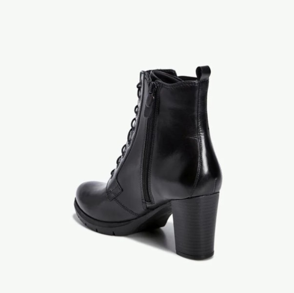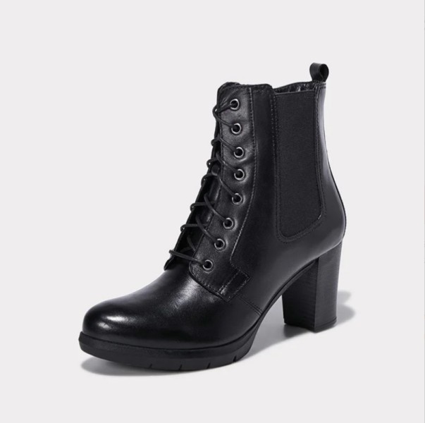 Leather-heeled ankle boots. One side zipper and one side elastic.