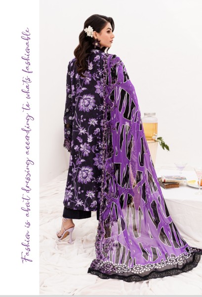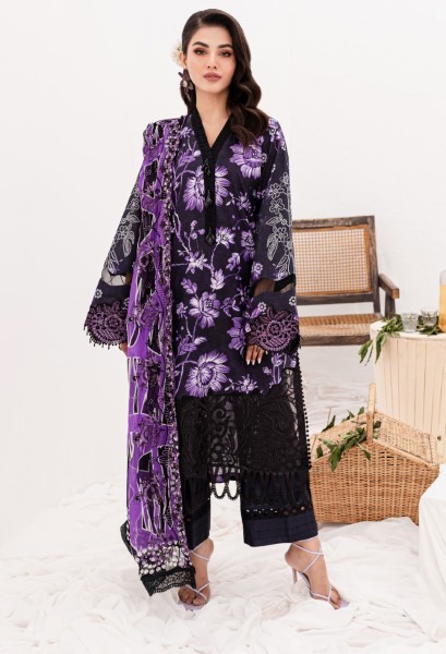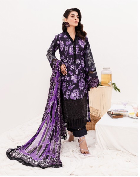 Nureh jaquard lawn embroidered printed 3 pis collection, Chiffon dupatta, lawn pant Size : large